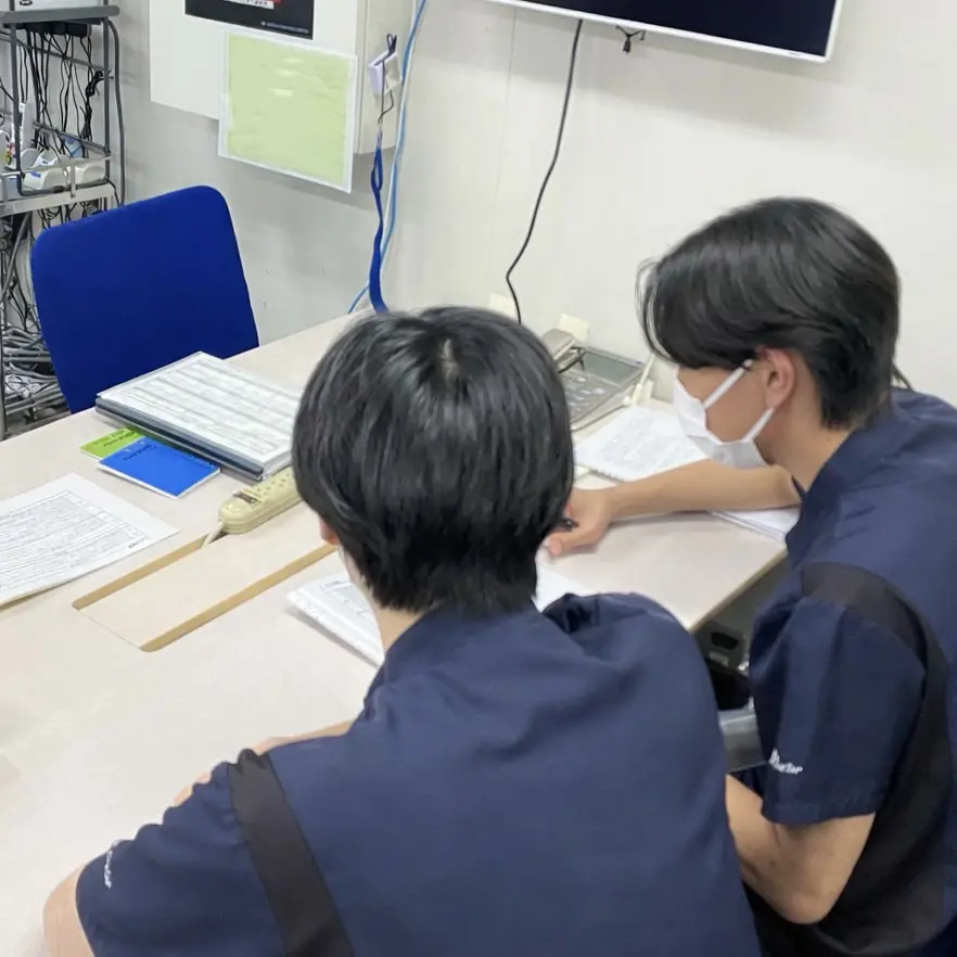 実際に自分たちが手を動かして行った実習や、治療・点検などの見学後には、担当者の方と評価表を用いて、その日の内容に対する理解度を振り返る時間が設けられていました。さらに、その場で疑問点を質問することで理解を深めることができ、非常に有意義な時間となりました。また、そこで次の日の内容も聞くことで、予習にも活かせました。