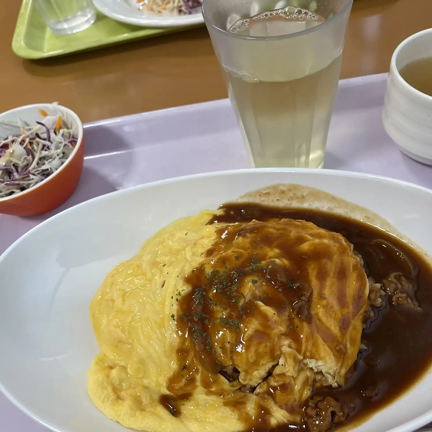 病院の食堂で昼食をとります。