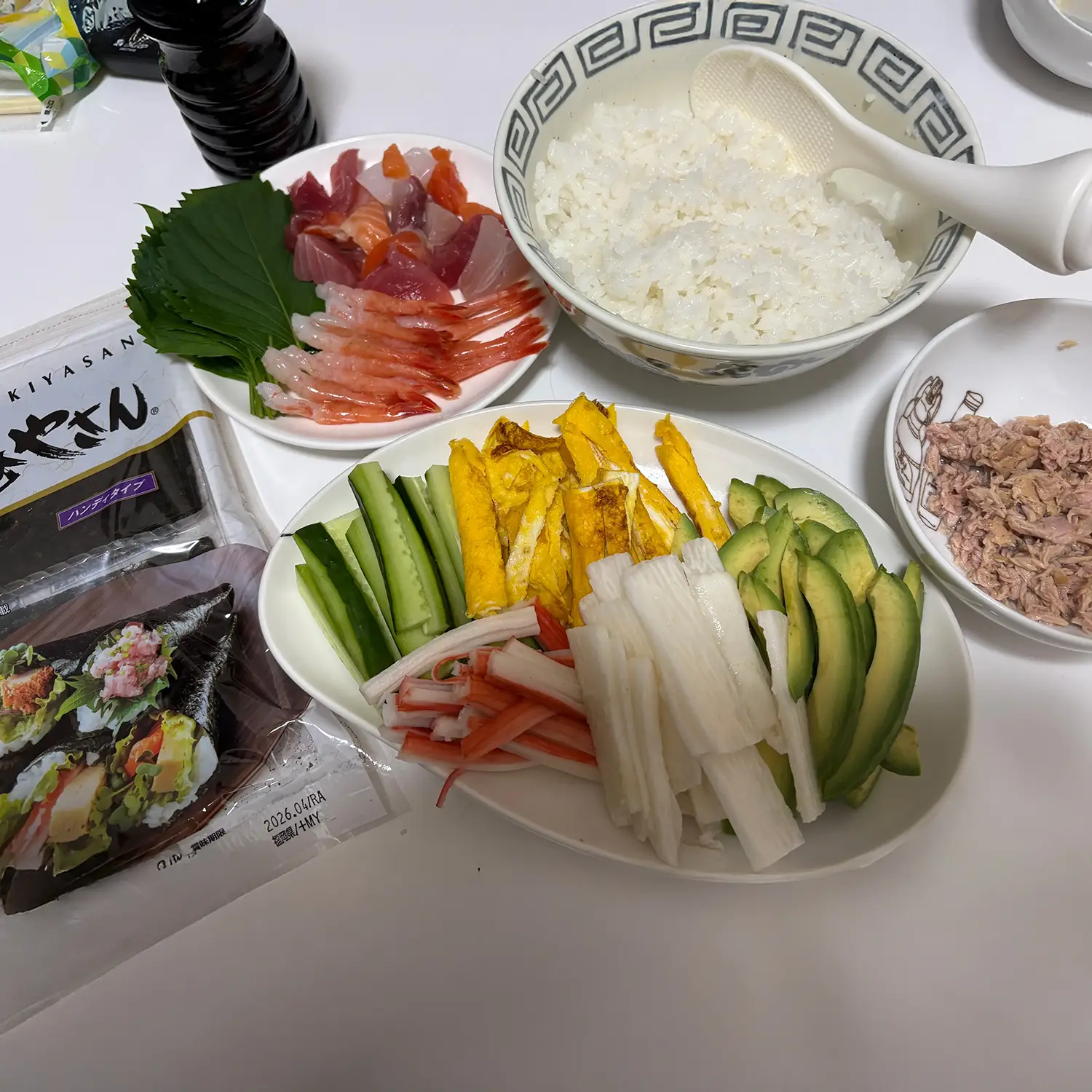 みんなで好きな具材を巻いて、お腹いっぱいになるまで楽しみました。- #夜ごはん