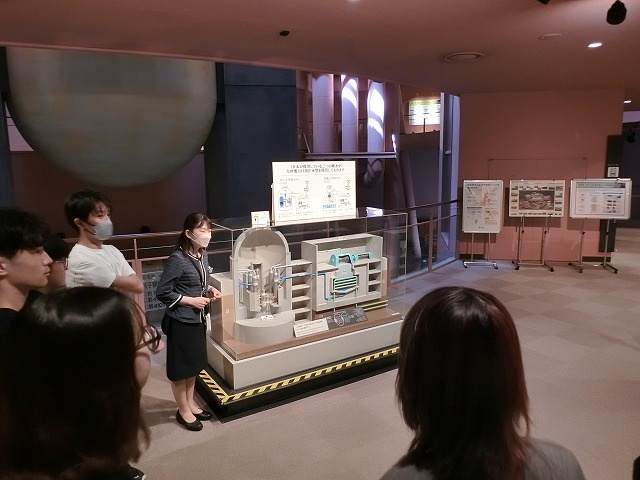続いて「あすぴあ」では、風力・太陽光・バイオマスといった再生可能エネルギーに関する展示や体験を通じ、次世代エネルギーの可能性を実感しました。サイエンス館では、原子炉の仕組みや安全対策について説明を受け、シアターや模型展示を通じて原子力発電の特徴を学びました。さらに、玄海原子力発電所では、福島第一原子力発電所事故以降に導入された多重防護策や緊急時対応設備を実際に見学し、現場ならではの緊張感を体験しました。