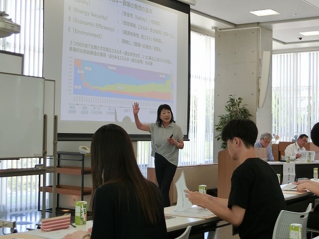 まず、資源エネルギー庁職員による「エネルギー政策の今後の方向性について」の講義があり、日本の電源構成やエネルギー自給率の課題、再生可能エネルギーや原子力発電の役割について幅広く学びました。特に、世界的な脱炭素化の流れや電力需要の増加を背景に、安定供給と環境負荷低減を両立させるために多様な電源を組み合わせる重要性について理解することができました。