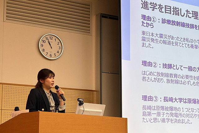 眞島さんは本学卒業後、長崎大学大学院へ進学され、現在は長崎大学と福島県の「東日本大震災・原子力災害伝承館」において、クロスアポイントメント研究員として精力的に研究活動を行っておられます。