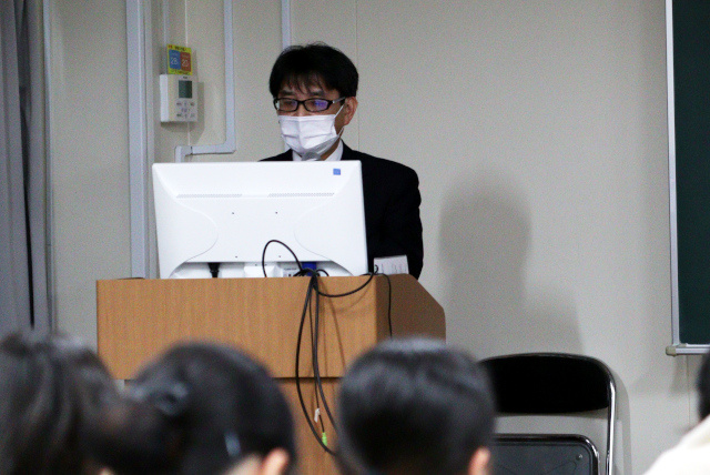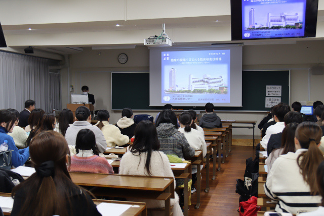 令和6年12月12日(木)、キャリア形成論の「医療技術職に求められる能力と人材について」をテーマとした枠で、国立病院機構九州医療センターの染矢賢俊技師長よりご講演をいただきました。