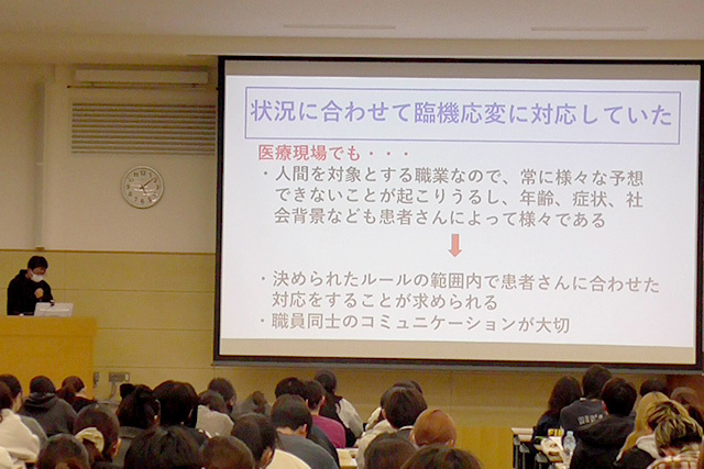 2年次生の純真学科目として開講している『ボランティア』の最終講義が12月5日(木)にさくらホールで実施されました。