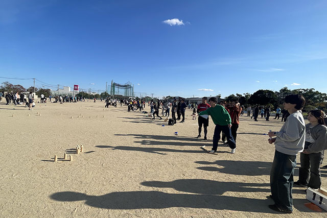 モルック同好会の2年次生が11月24日(日)に大川市で開催された「大川市制70周年記念モルック大会秋の陣」に出場しました。福岡県内外から87チーム、300人を超えるモルッカー(モルック競技者)が参加した大会でした。結果は87チーム中43位でしたが、優勝チームから1勝をもぎ取るなど、初心者のチームとしては大健闘。