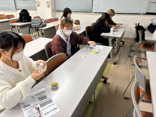 勉強会は2部構成で行いました。第1部では江崎先生からの地層処分に関する講義を全員が受講し、第2部では青森県六ヶ所村の施設見学予定者6名がベントナイト実験を体験しました。学生からは「普段聞けない話を聞けてよかった」「NUMOの活動を知れてよかった」などの声が寄せられ、地層処分への理解が深まり、安全性の課題を認識するきっかけとなりました。また、自分の住む地域の近くに最終処分場の候補地(佐賀県玄海町)があることを知り、驚きと関心を持った学生もいました。さらに、原子力関連の仕事があることを認識し、将来の進路選択肢として考える学生もいたことは大きな成果です。