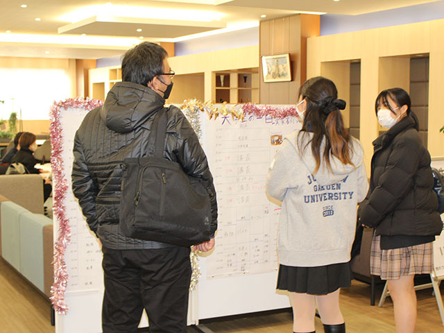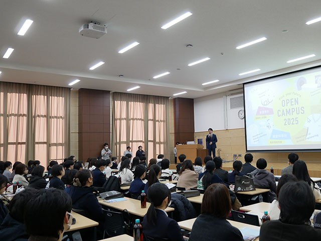 12月の開催にもかかわらず、一般入試に向けて準備を進める高校3年生を中心に、多くの参加者にご来場いただきました。会場では、学友会学生による大学生活を紹介するポスター展示や、学生と直接話せる交流企画も実施され、参加者の皆さんにリアルなキャンパスライフを体感していただける機会となりました。
