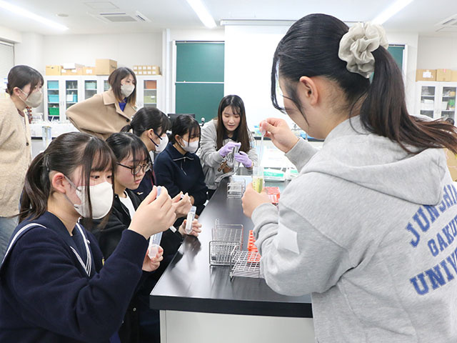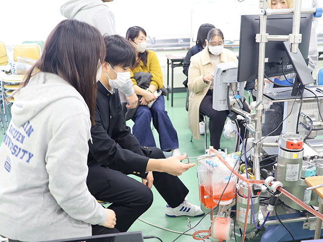 - 医療系の学校なので難しい説明や長いお話が多いと思っていたのですが先輩方の優しい説明や体験できる検査も多く、とても楽しく学べる時間を過ごせました。