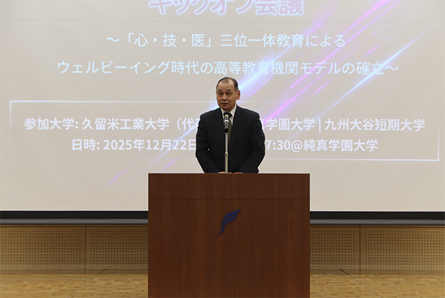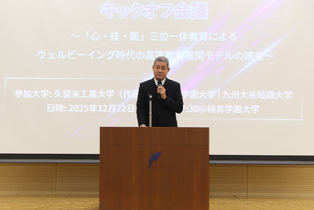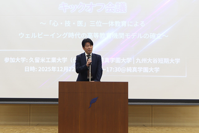 2025年12月22日(月)、純真学園大学(福岡県福岡市)、久留米工業大学(福岡県久留米市)、九州大谷短期大学(福岡県筑後市)の三大学連携による「広域総合大学化」事業のキックオフ会議を、本学にて開催いたしました。
