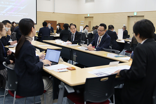 キックオフ会議では、久留米工業大学の日野学長、九州大谷短期大学の吉元学長、本学の福田学長が挨拶を行いました。日野学長は「三大学が共同して課題を克服し、地域の期待に応える」、吉元学長は「交流を通じて新しい文化を創る」、福田学長は「世の中に少しでも役立ちたいという思いが事業の源」と、それぞれ事業への思いを語りました。