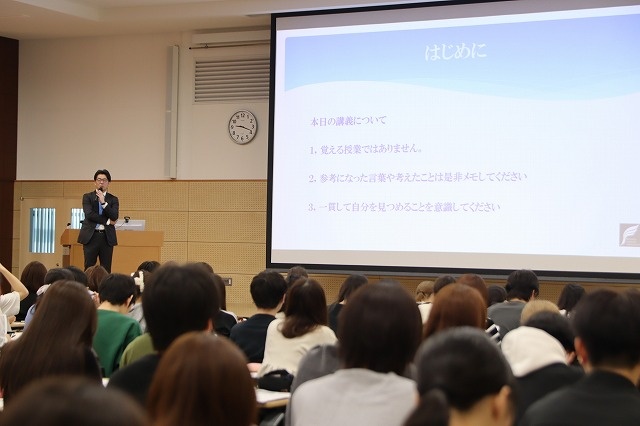 初回は福田庸之助学長より、純真学園の学園祖である福田昌子先生の生涯と功績や学園訓の意味、そして、信頼されるためのスキルについてのお話がありました。講義内では現状の自分を分析するワークも行われ、これからの自分の成長を振り返るきっかけが示されました。