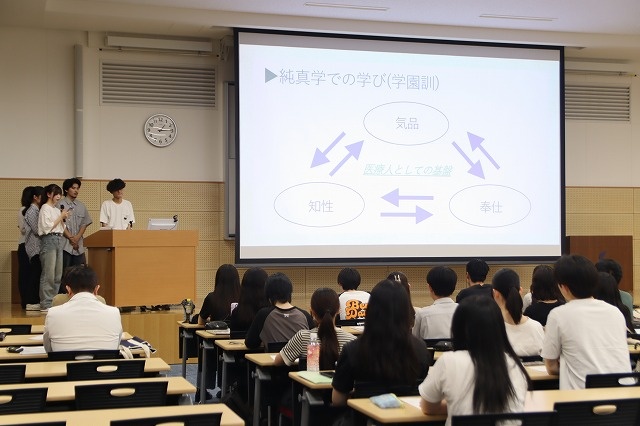 純真学Ⅱは、1、2年次生で純真学科目を履修した3年次生を対象としています。「自己探求」をテーマに、一流の仕事やプロフェッショナルに対する理解を深め、医療人としての心構えを構築することに重きを置いています。その一環として、日本の伝統芸能である落語鑑賞と歌舞伎観劇を実施しています。