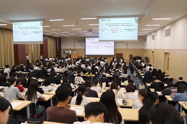 鑑賞後は、落語と歌舞伎から学んだ「一流」や「プロフェッショナル」の定義、ならびに医療従事者としての心構えについて、グループワークを通じてスライドにまとめ、学科ごとにプレゼンテーションを行いました。