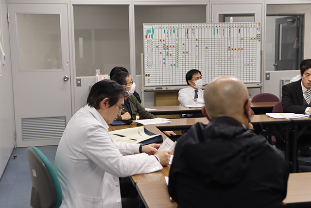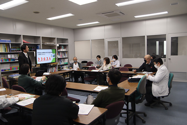 検査科学科の学生は臨床検査技師の資格取得を目指して学修していますが、就職先は医療機関だけでなく企業や研究機関など多岐にわたり、就職活動の時期や進め方もさまざまです。研修に参加した教員は、就職担当者の説明を踏まえ、就職活動中の学生に対して適切な時期に適切な声掛けや支援を行うためにはどのような対応が必要かについて討論しました。