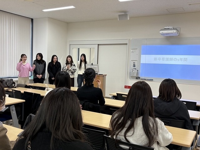 入職を目前に控え、期待と同時に不安を抱える時期の4年生に対し、一足先に現場で活躍する先輩たちが「1年目のリアルな歩み」を共有しました。夜勤の準備やリフレッシュ方法など、先輩ならではの具体的なアドバイスが送られました。参加した学生からは、「具体的なイメージが湧き、入職への不安が少なくなった」という声が多く聞かれ、晴れやかな表情で新生活への決意を新たにしていました。